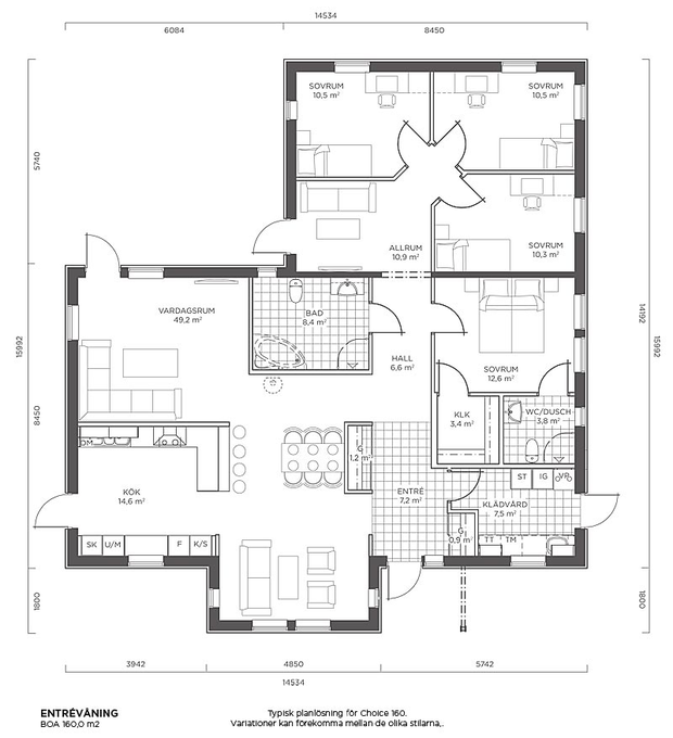 - Inga korridorer