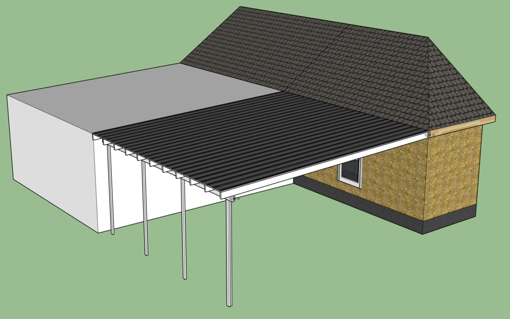 Måste ansöka om bygglov, men tanken är att få till en carport den här säsongen. Sonen har sitt sovrum precis bredvid sidordörren där, och det är morgonsol rakt in i hans rum, så han kommer välkomna lite skugga.