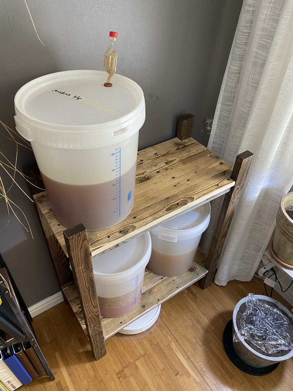Emma behövde en hylla till sina vintunnor när dom står och jäser, blir lite mer ordning då. Ska även foliera själva tunnorna för dom är rätt så fula, tyvärr.