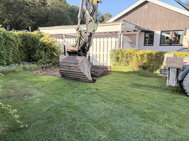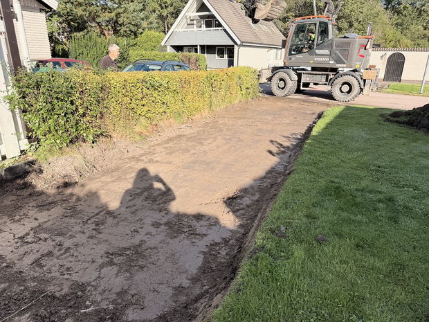 En kompis kusin hade grävskopa och ville gärna hjälpa till mot lite kompensation. Han kom över och hade ett släp grus med sig, sen grävde han ut hela uppfarten på ungefär 30cm djup och tippade i gruset.
