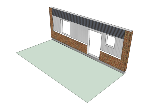 Detta är vår fasad, ja, inte hela, men tillräckligt för att man ska kunna förstå hur verandan kommer se ut.