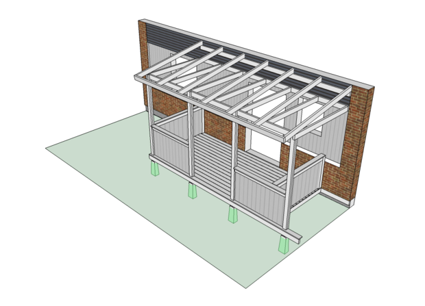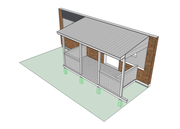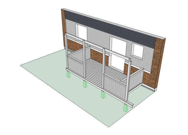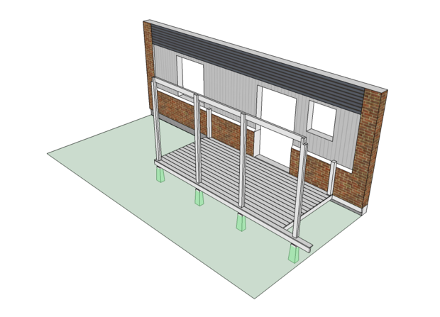 Senaste veckan så har jag rivit ner verandan på framsidan och köpt virke och köpt hem, samt försänkt fyra stycken plintar. Då flera frågat hur det ska bli så tänkte jag lägga ut lite ritning här på hur det kommer bli, håll till godo