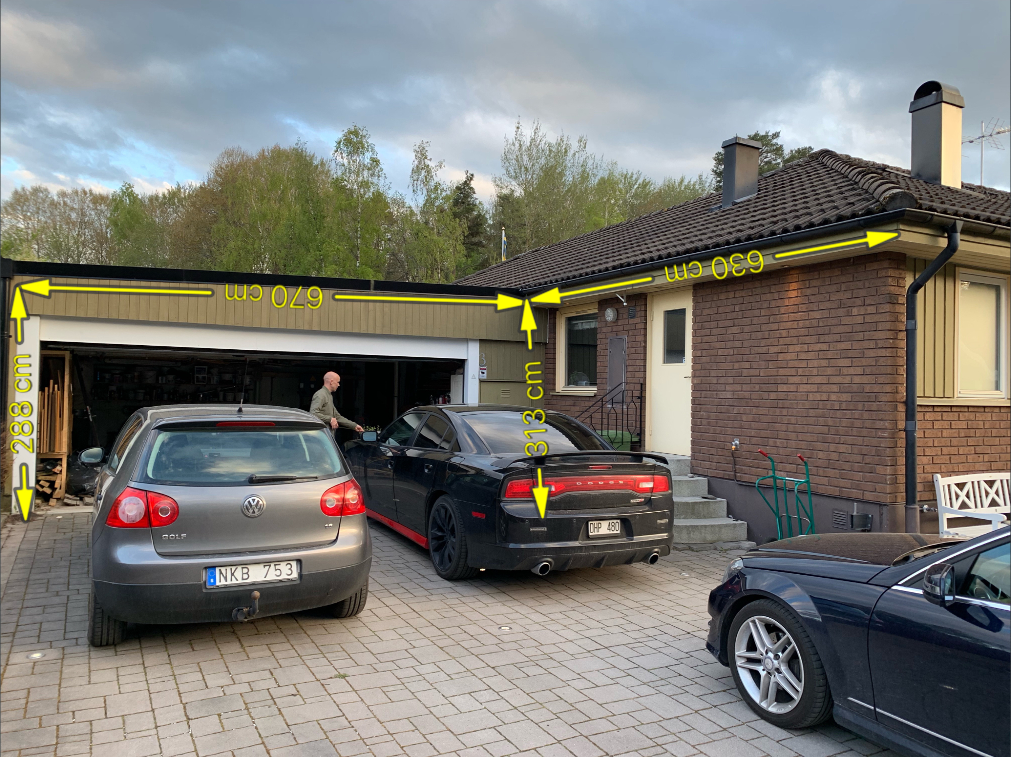 Måste ansöka om bygglov, men tanken är att få till en carport den här säsongen. Sonen har sitt sovrum precis bredvid sidordörren där, och det är morgonsol rakt in i hans rum, så han kommer välkomna lite skugga.