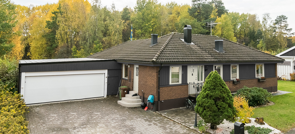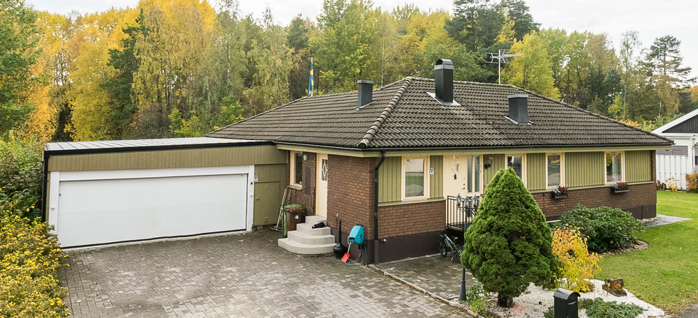 Idag har huset en rätt så ful färgkombination av smutsgult och äckelgrönt. Det har stört mig i många år. Problemet är väl förutom att det är en hel del jobb att måla om ett hus att teglet är brunt på huset. Det är inte många färger som passar till brunt tegel.