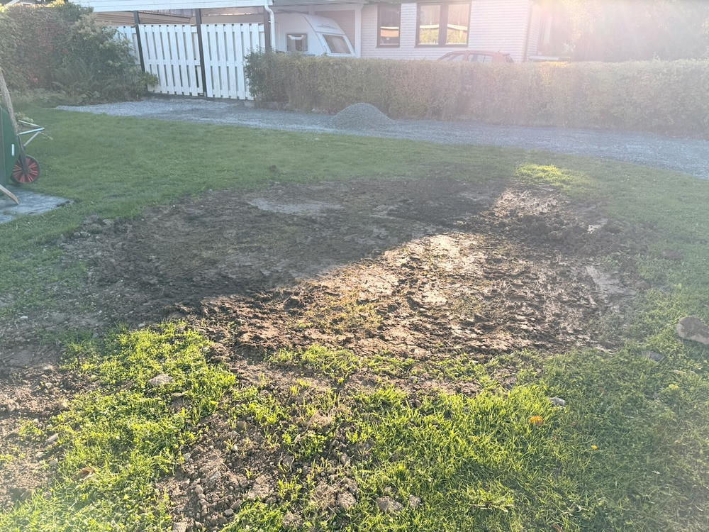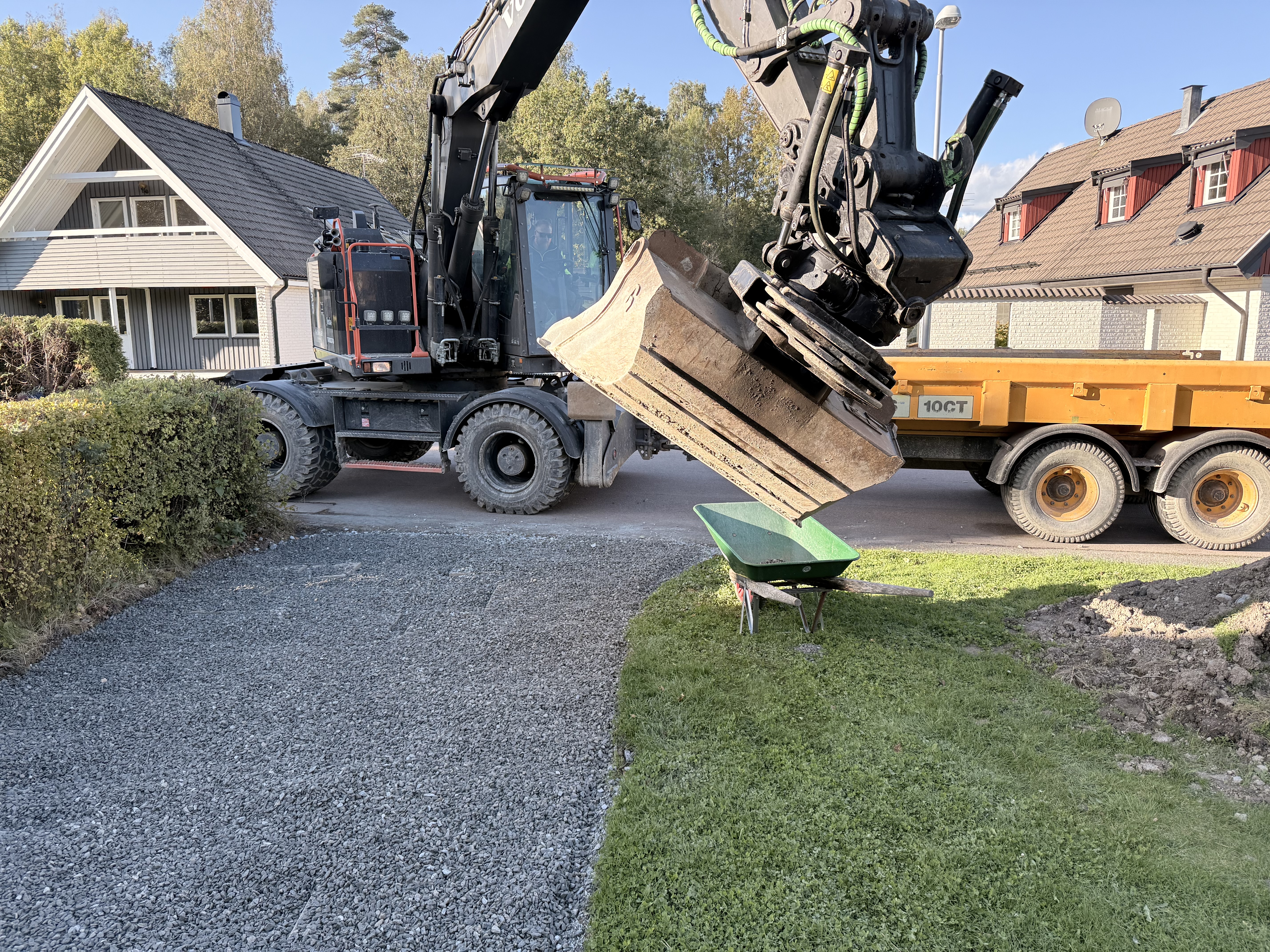 Nu har vi fått en massa grus levererat och utspritt, hoppas det inte är för mycket! Tyvärr så är vi sjuka som tusan så vi får vänta med att fortsätta med det här projektet för tillfället.